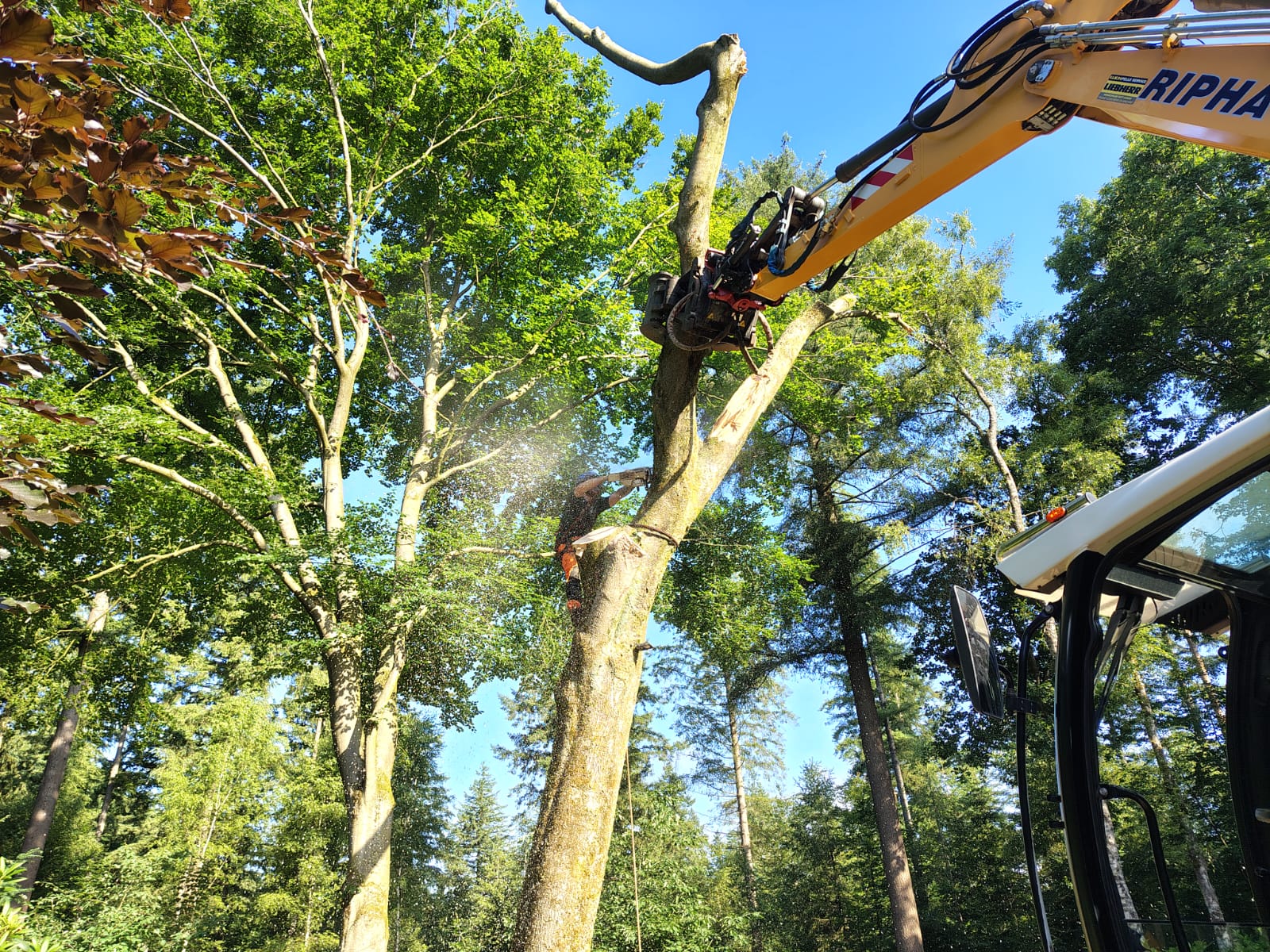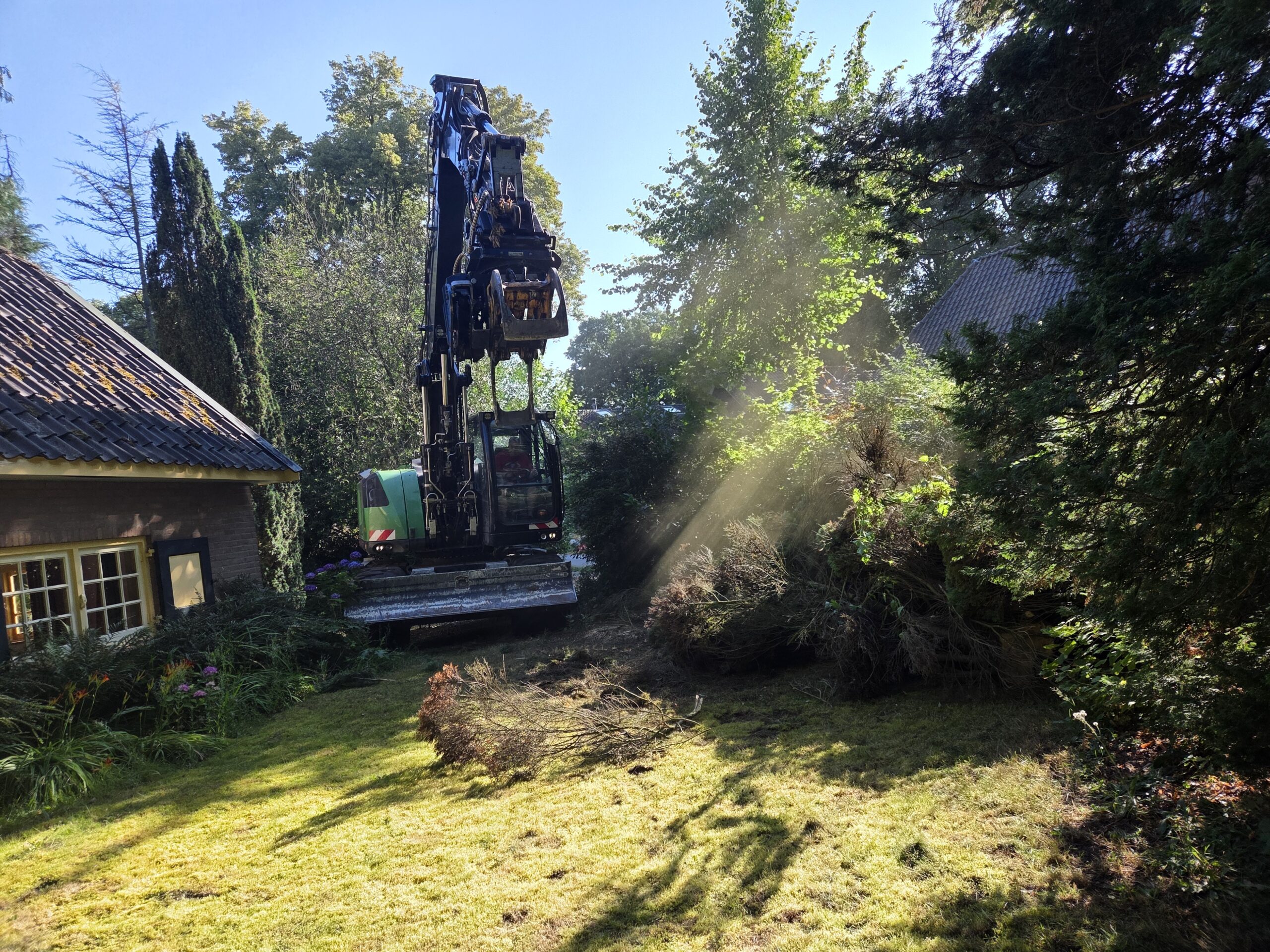 Het kappen van coniferen in een tuin, een beuk met stormschade en het eerste transport met onze nieuwe Daf XF510